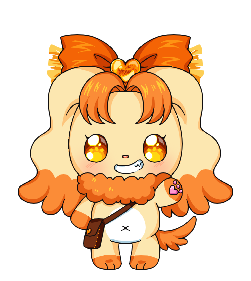 Amber is a cream-colored Lupinite fairy, based in appearance on a Cocker Spaniel. She has ring of curly, wool-like orange fur around her neck and long drop ears with wavy fur. She's average for a fairy, standing at about 10 inches in height. She has a white belly, orange tips on her paws and ears and a short orange tail. She has orange eyes and a round nose. She has straight orange bangs and wears an orange bow on her head holding her Heart Jewel, which is carried over into her Crystal Warrior form. She often wears a brown messenger bag that she carries her books and other possessions in.